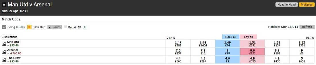 It's not much less than the profit had you backed Manchester United at 1.50 and left the bet to run, risking an Arsenal equaliser.