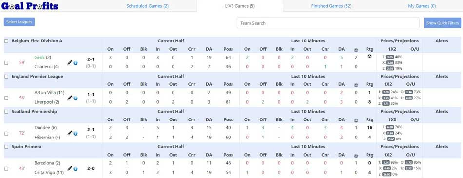 Our Live Stats Module tracks every game in-play and shows you exactly which teams are trying to score. It's a great addition to your toolbox.